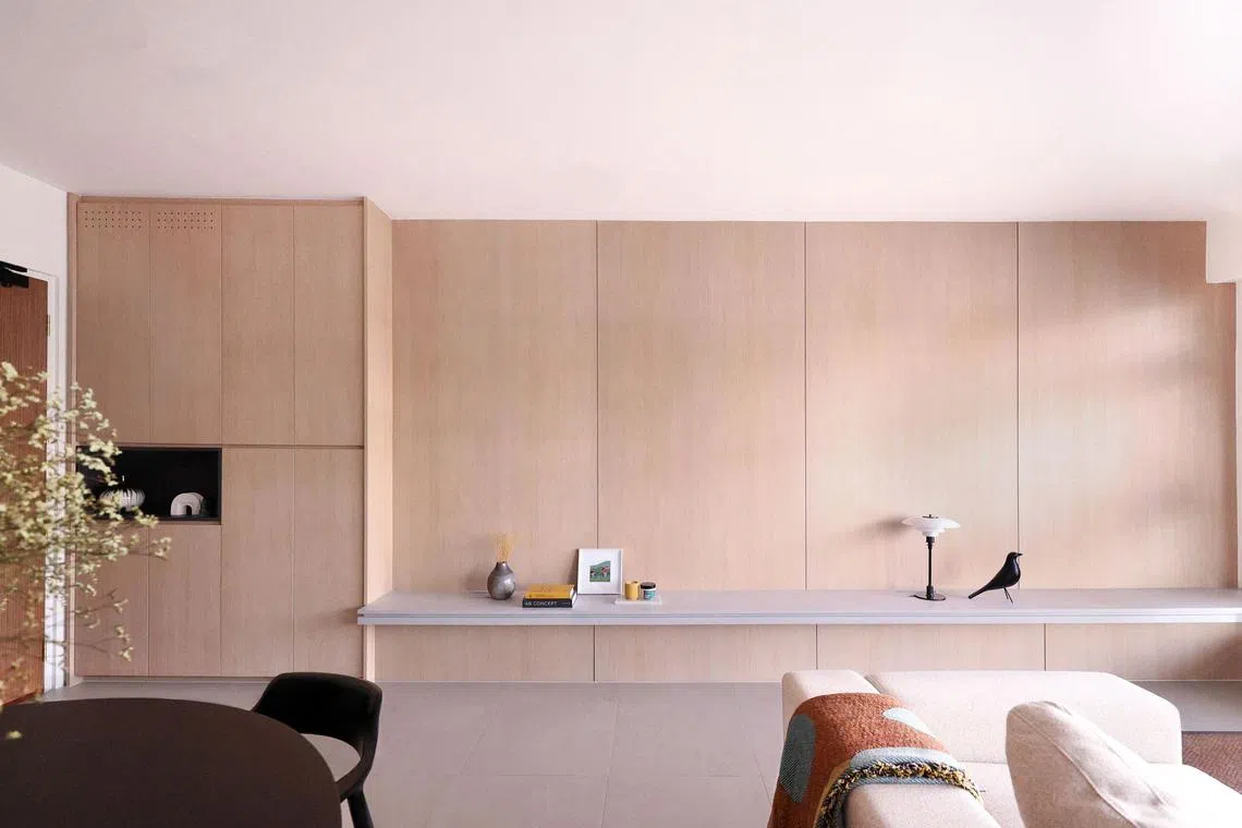SINGAPORE – Designer Valerie and her husband Zhi Yuan looked to Japandi design for their marital home, a 1,185 sq ft five-room HDB flat in Sengkang East.