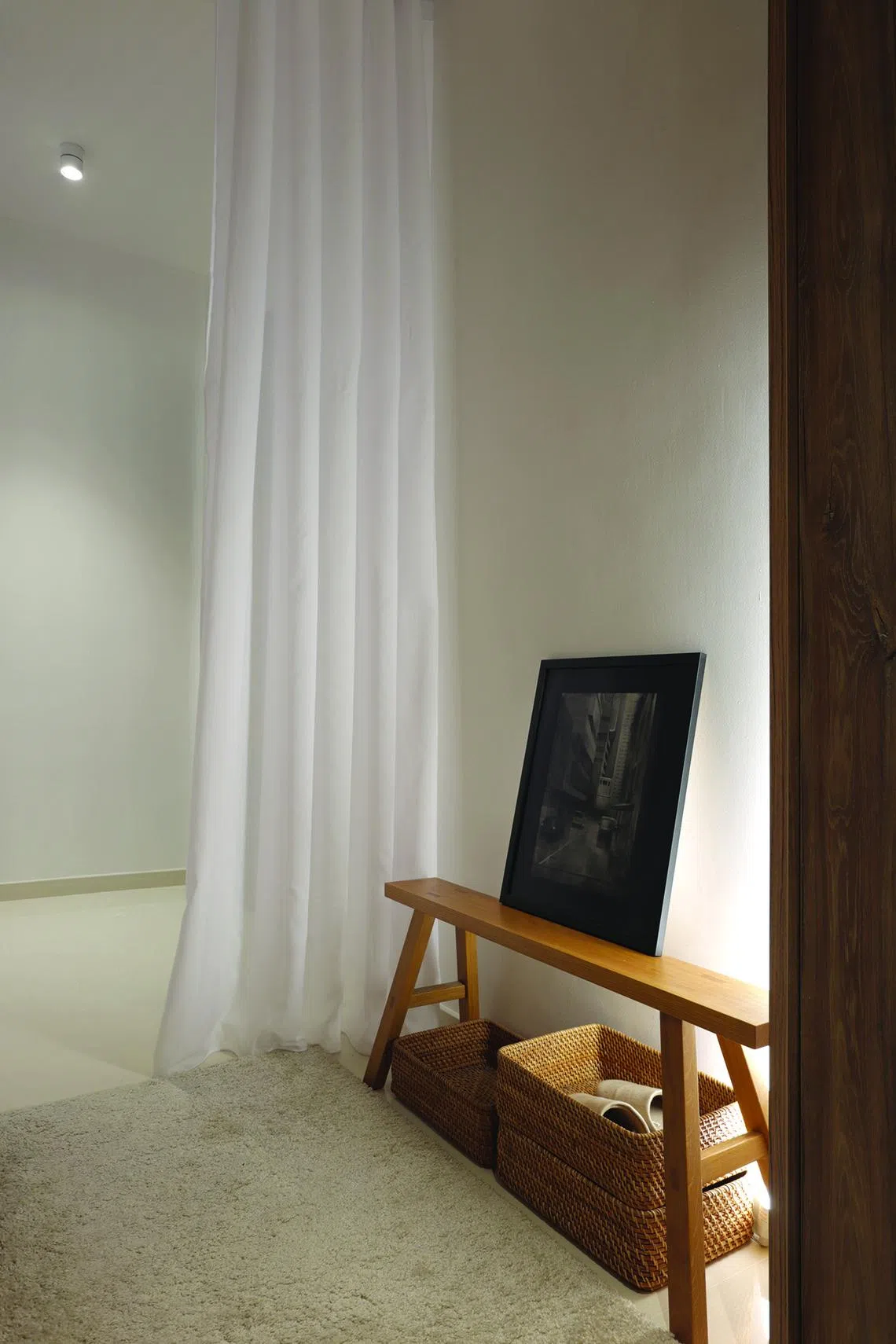 The designers also added layers of sheer curtains throughout the home for privacy and to demarcate spaces.