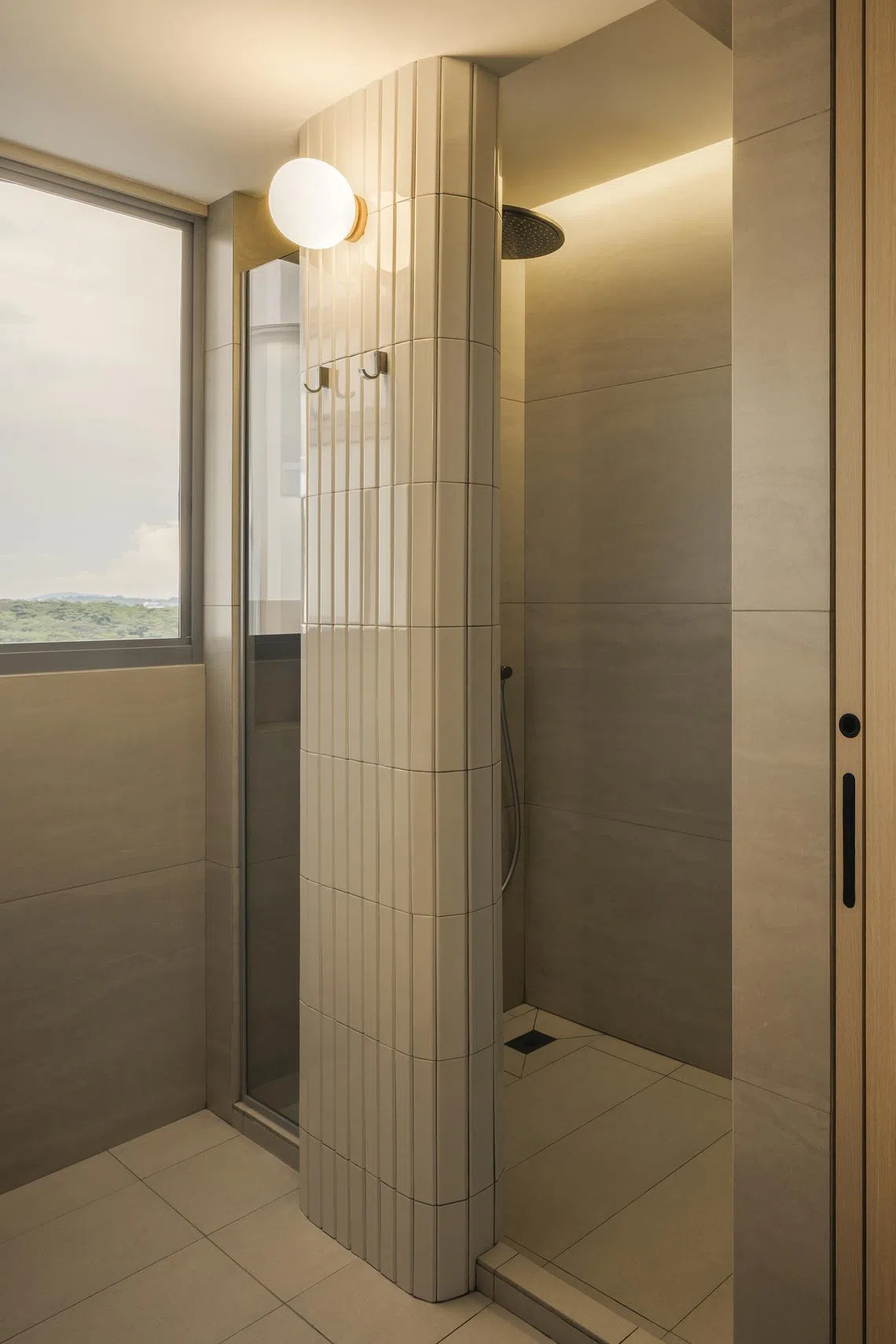 Slim tiles in the bathroom allowed for the creation of curved edges.
