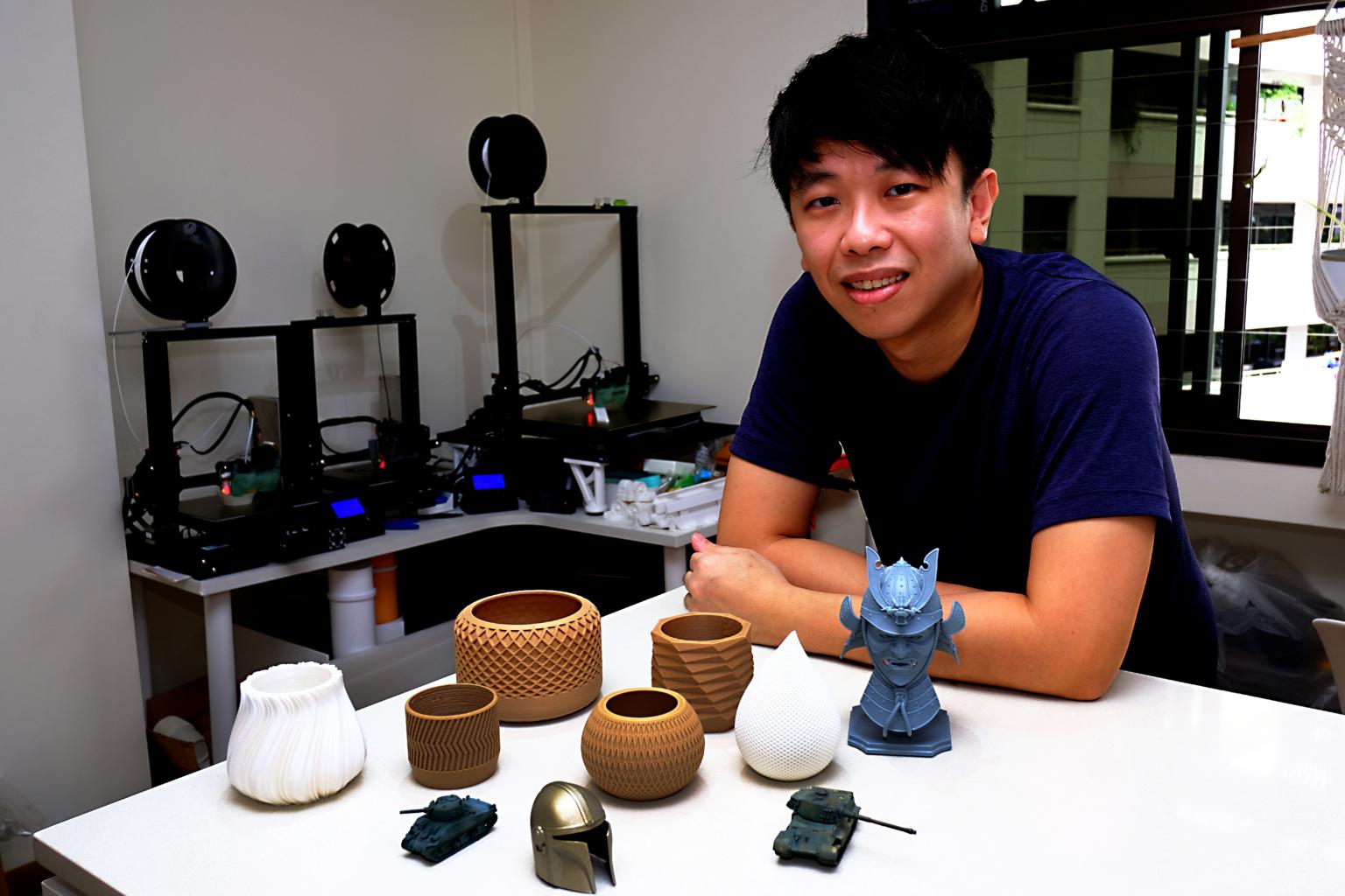 Hexar Creations founder Jeremy Wee has eight printers for his home-based 3D-printing business.