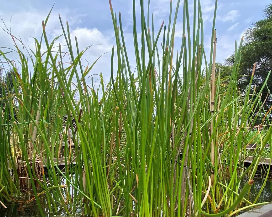 Water chestnut plants have upright, tube-like leaves which are hollow inside.