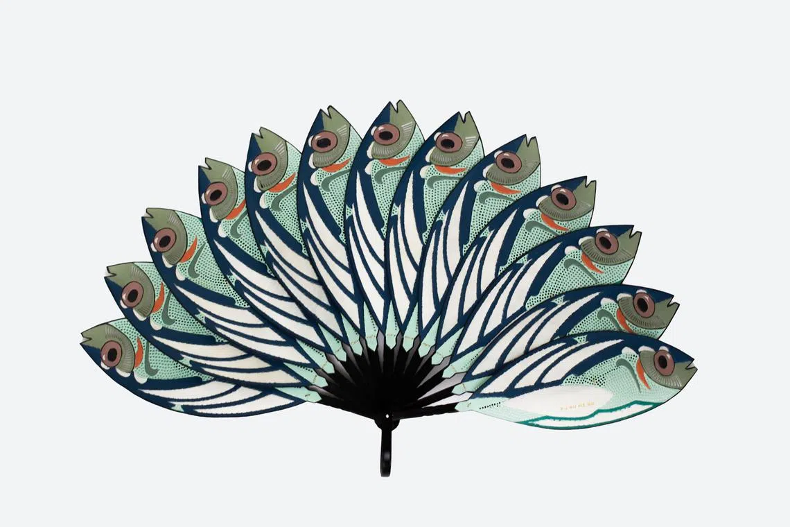 Pubumesu’s line of luxe leather fans also includes a graphic fish fan (US$151) and an ivory crab fan (US$158) that unfolds to reveal a large orange crustacean and tiny starfish.