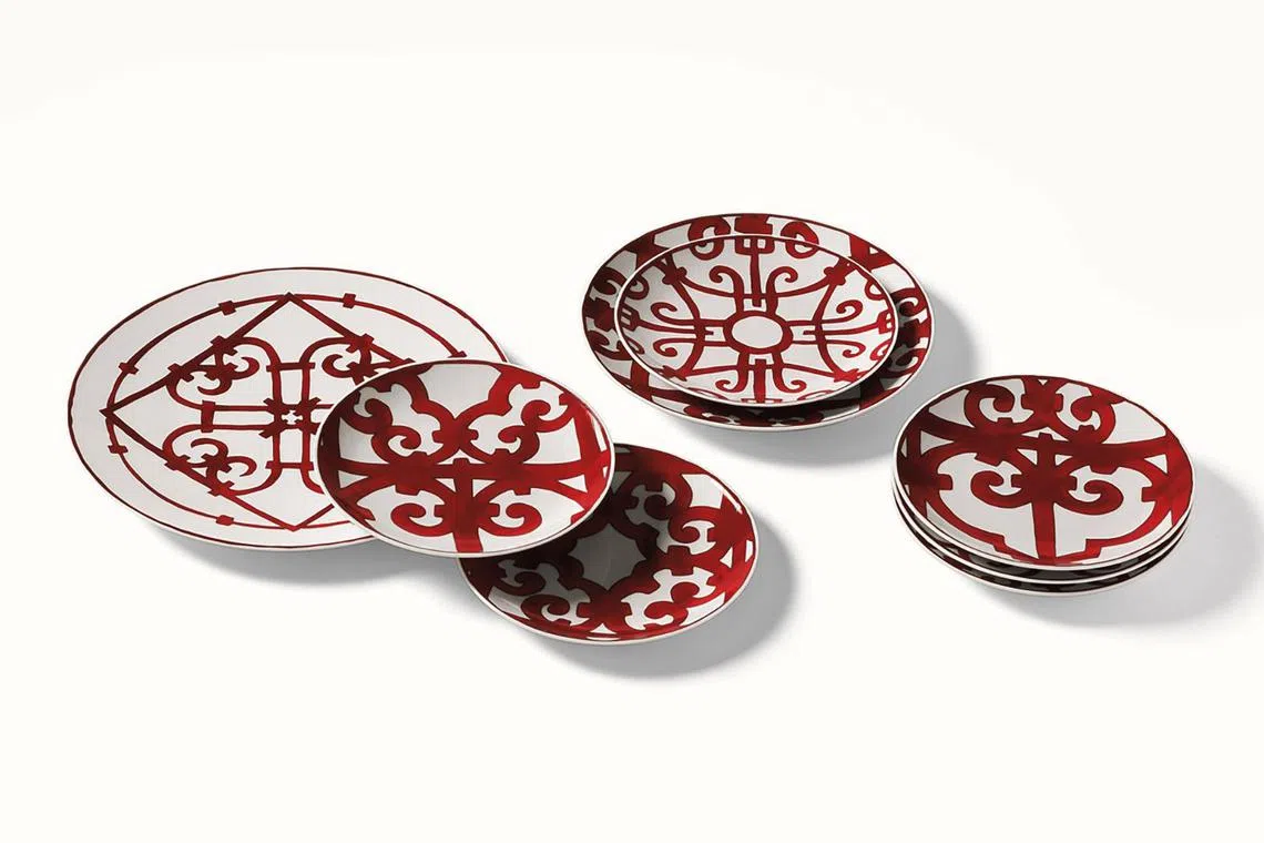 Brichambaut was inspired by Andalusian homes along the banks of the Guadalquivir in southern Spain, which display lace-like patterns in their wrought-iron balconies. This porcelain collection highlights their exuberance in its signature fiery red hue.
