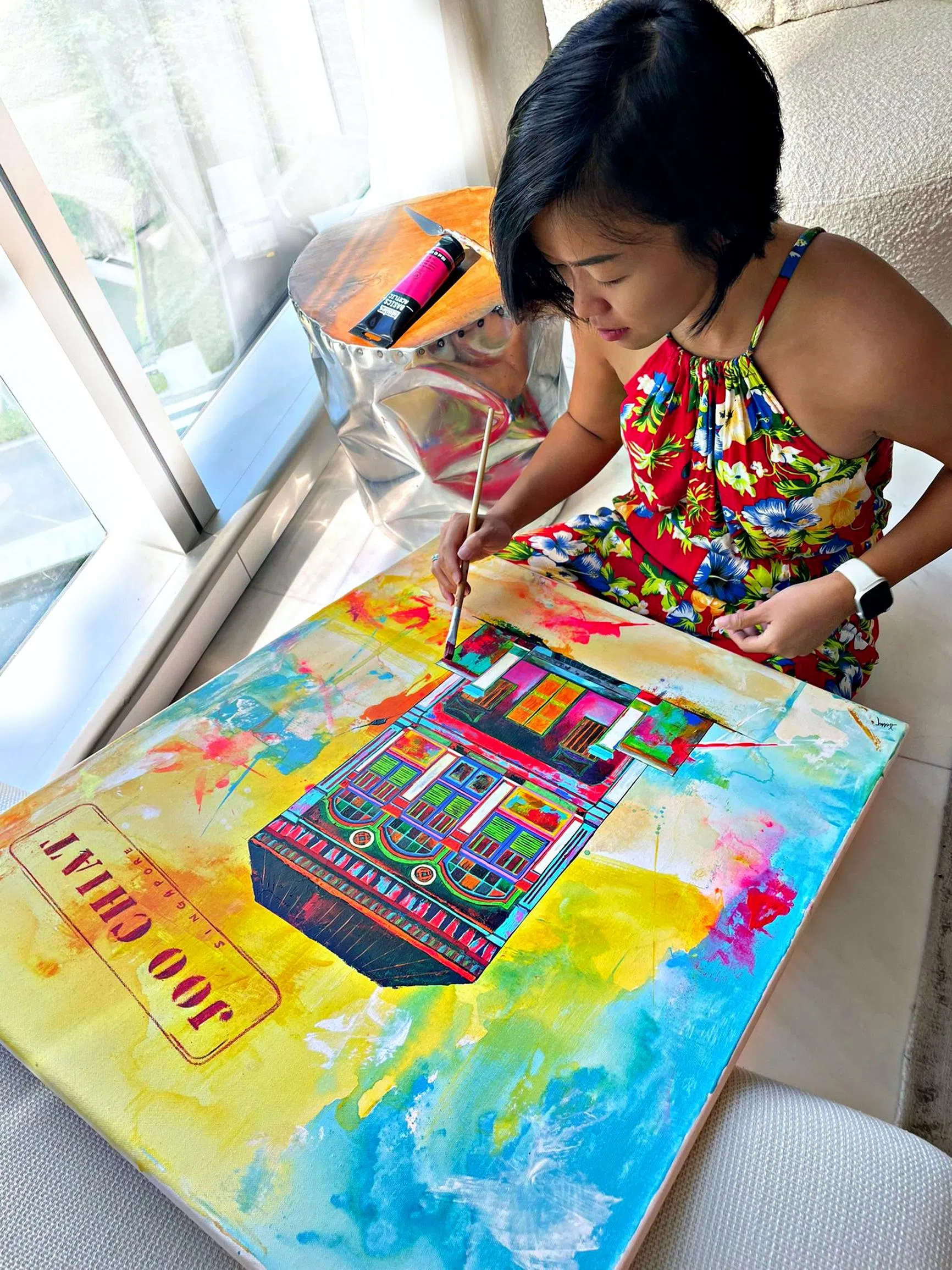 “Inspired by my Singaporean identity and life experiences, I transform traditional architecture, landmarks and mundane daily routines into modern contemporary creations,” says the 36-year-old, who adds that art was her favourite subject in secondary school.