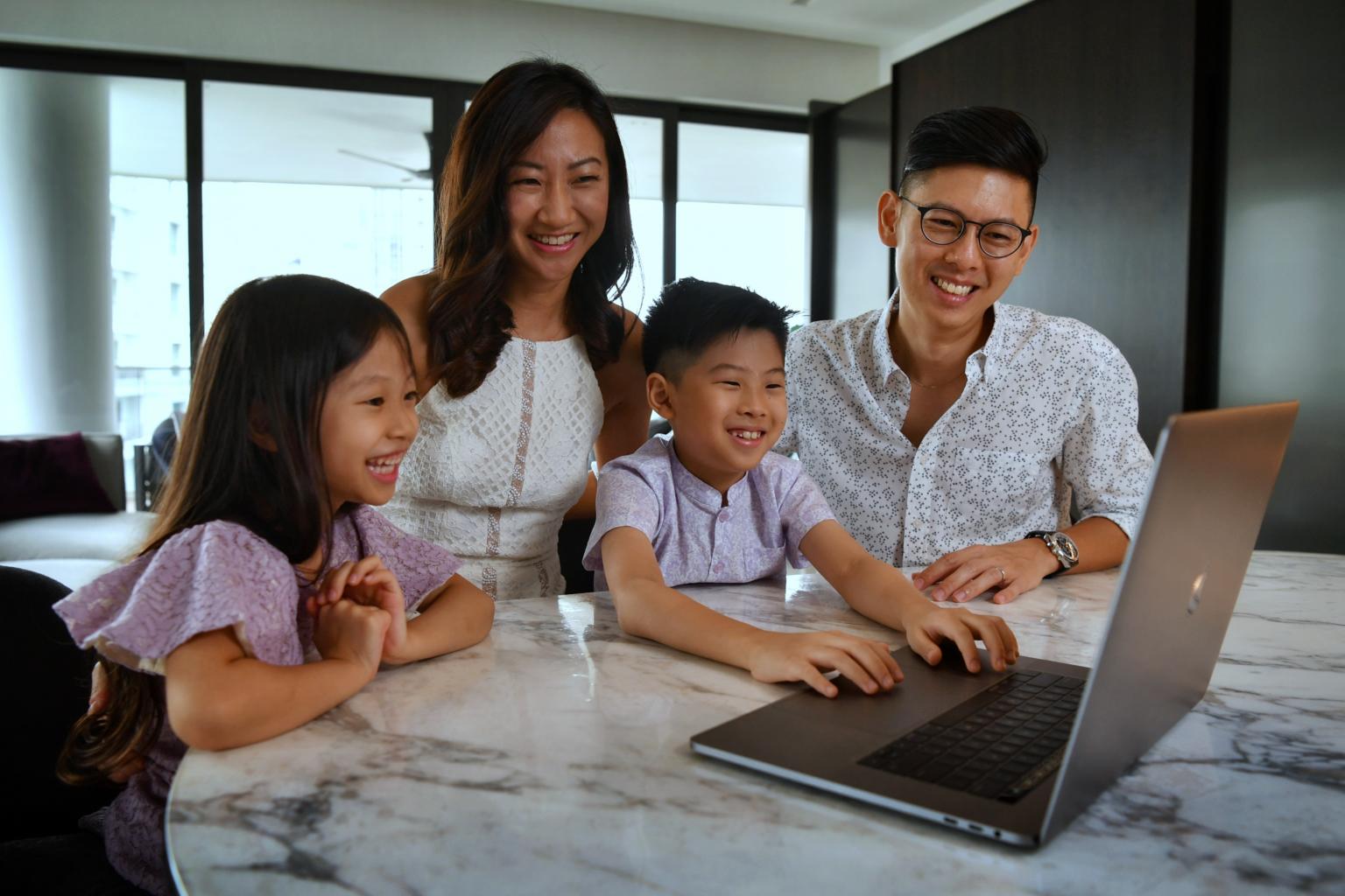 Eye doctor Claudine Pang and her husband Aaron Tan guide their children, Nathanael and Sophie, in protecting their eyesight.