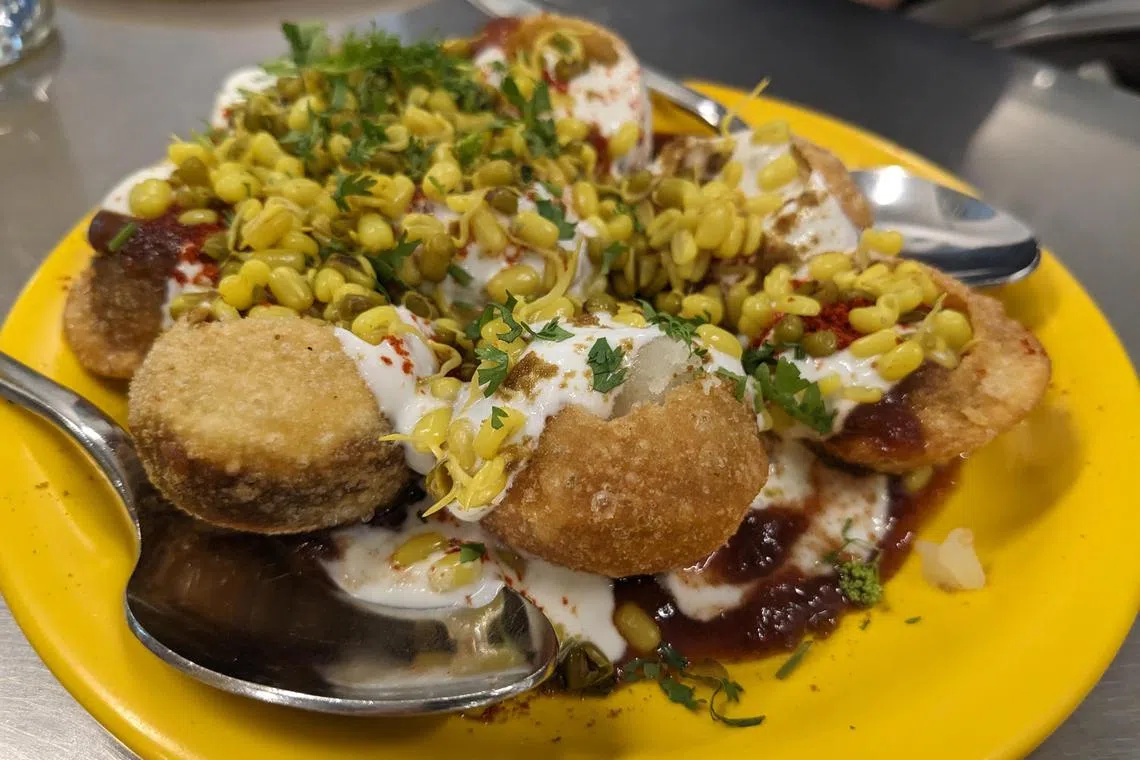 Other highlights include thalipith-pitla, a roti made with mixed pulses and masala, and sev puri, a moreish snack of deep-fried puri pockets laden with yogurt, chutneys, potatoes and a shower of sev (crispy gram flour vermicelli).