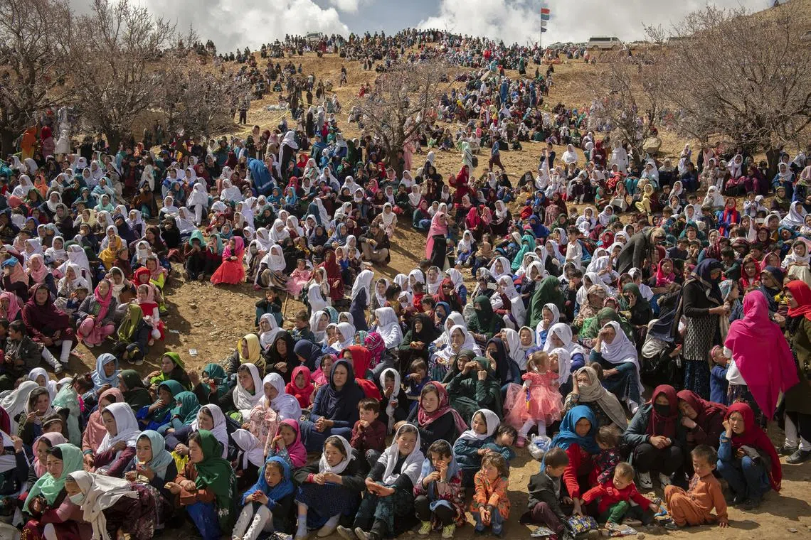 Hundreds of women in their best clothes at the Nowruz celebration in the village of Nalij, Afghanistan, on March 21, 2021, from Iranian-Canadian photographer Kiana Hayeri’s series Promises Written On The Ice, Left In The Sun.