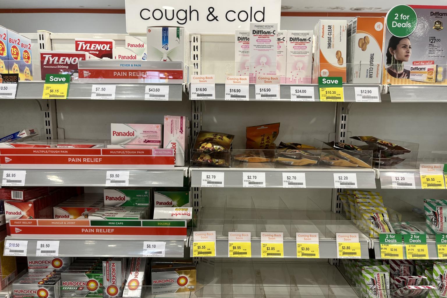 At seven out of 10 pharmacies in the central and eastern areas that ST checked on Monday, the shelves that stocked cough and cold medicine were largely empty.