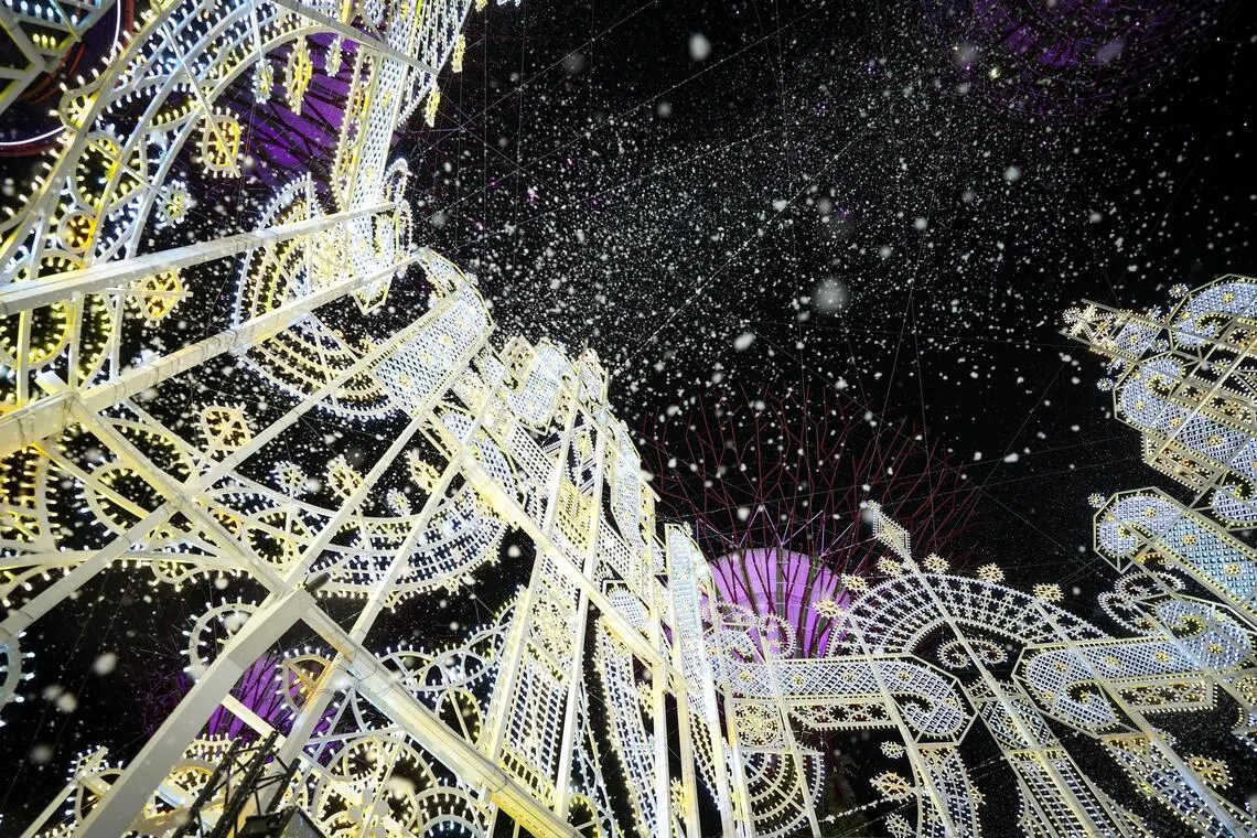 Over at the Christmas Wonderland, organised by Blue Sky Events and held at Gardens by the Bay, the “snowfall” is more modest.