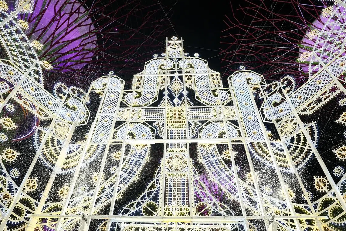 The illusion is augmented with a gentle shower of “snow” that takes place at 30-minute intervals from 5 to 6.30pm – only in the evening, Ms Lee adds, to ensure that the light effects are most impactful.