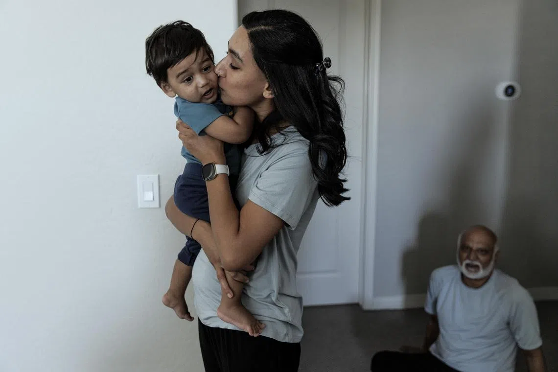 Ms Shivani Hiralal with her son, Rishav, at home in Phoenix, Arizona. She joined a pregnancy and post-partum mood support group that she said was a source of comfort.