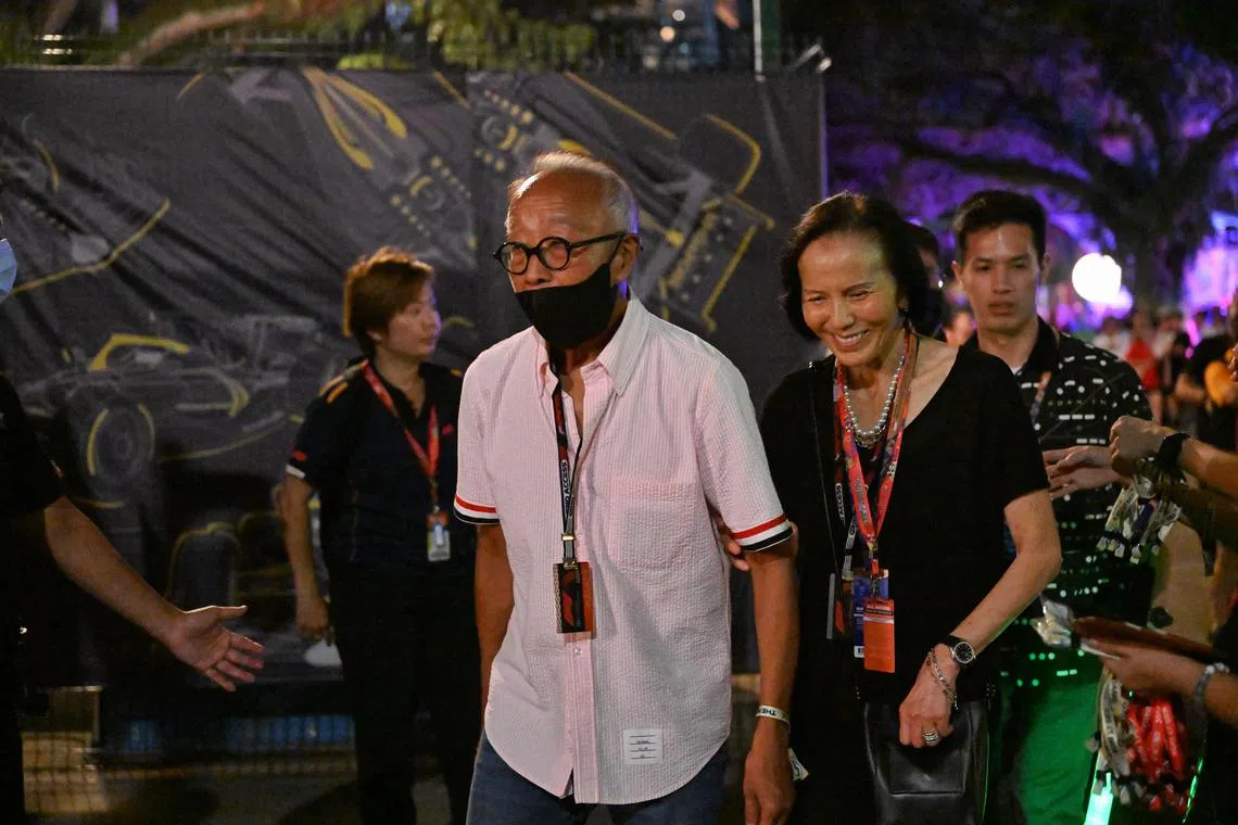 Mrs Christina Ong and her husband, Mr Ong Beng Seng, arriving to watch British pop star Robbie Williams' show at the Padang during the Singapore Grand Prix in September.