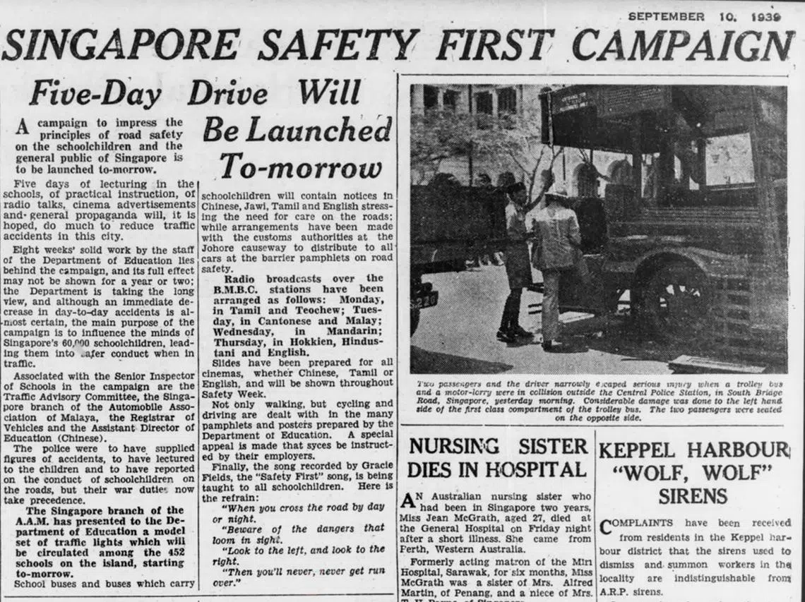 The years 1939 and 1945 had the island’s earliest safety-first campaigns, with the 1945 one taking place after the Japanese Occupation and the return of British rule.