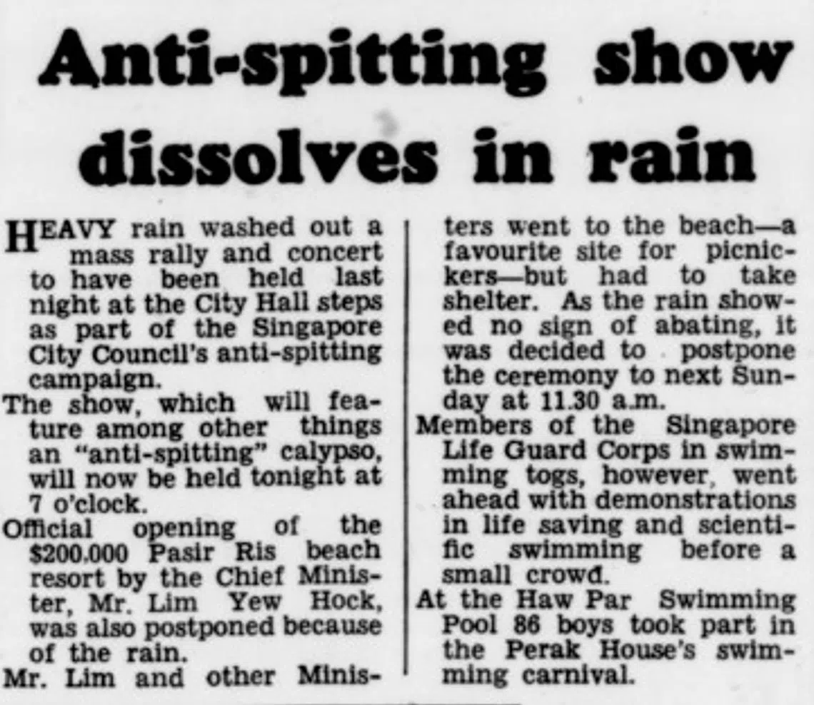 In 1958, then Mayor Ong Eng Guan asked the city council to approve a $60,000 campaign to “clean up the slums and kampongs of Singapore” – which would involve a new anti-spitting drive, as well as pushes against littering and pests.