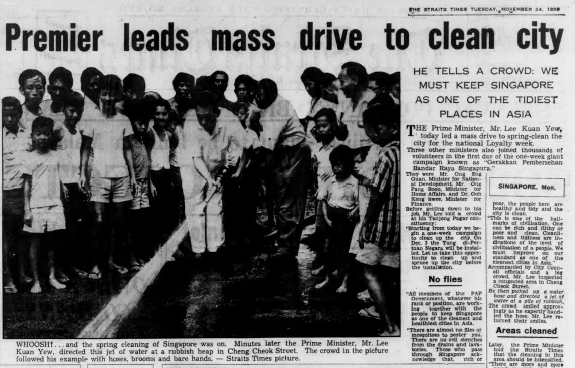 In the late 1950s, then Prime Minister Lee Kuan Yew was a key proponent of hygiene and cleanliness campaigns.