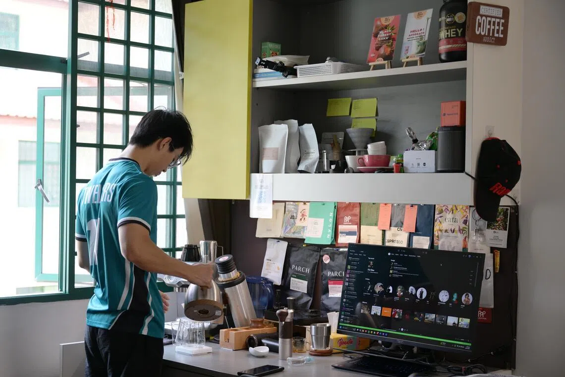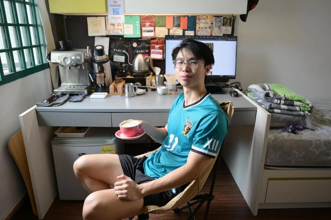 At 8am, before most lectures begin, Mr Low Dong Xuan, 23, is already pulling shots in his dorm room.