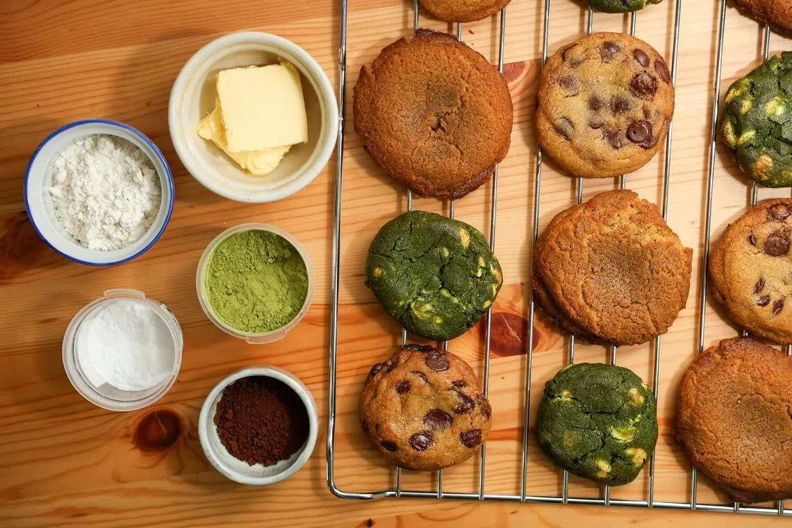Roti Boy, chocolate chip and matcha cookies prepared by Mr Yen.