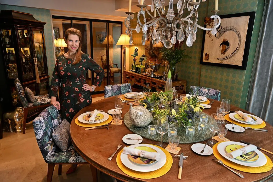 “My work oscillates between richness and calmness, depending on the purpose of the design and desired effect,” she tells The Straits Times in an interview at home. “This is the sweet spot between lavishness that sometimes can be perceived as cluttered for the purists and sterile spaces that are minimalist.”