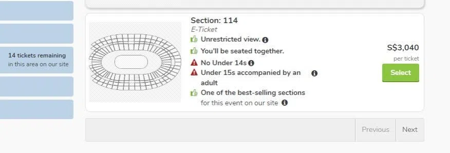 One buyer on Carousell in Malaysia offered to pay RM111,111 (S$33,000) for the Category 1 tickets,