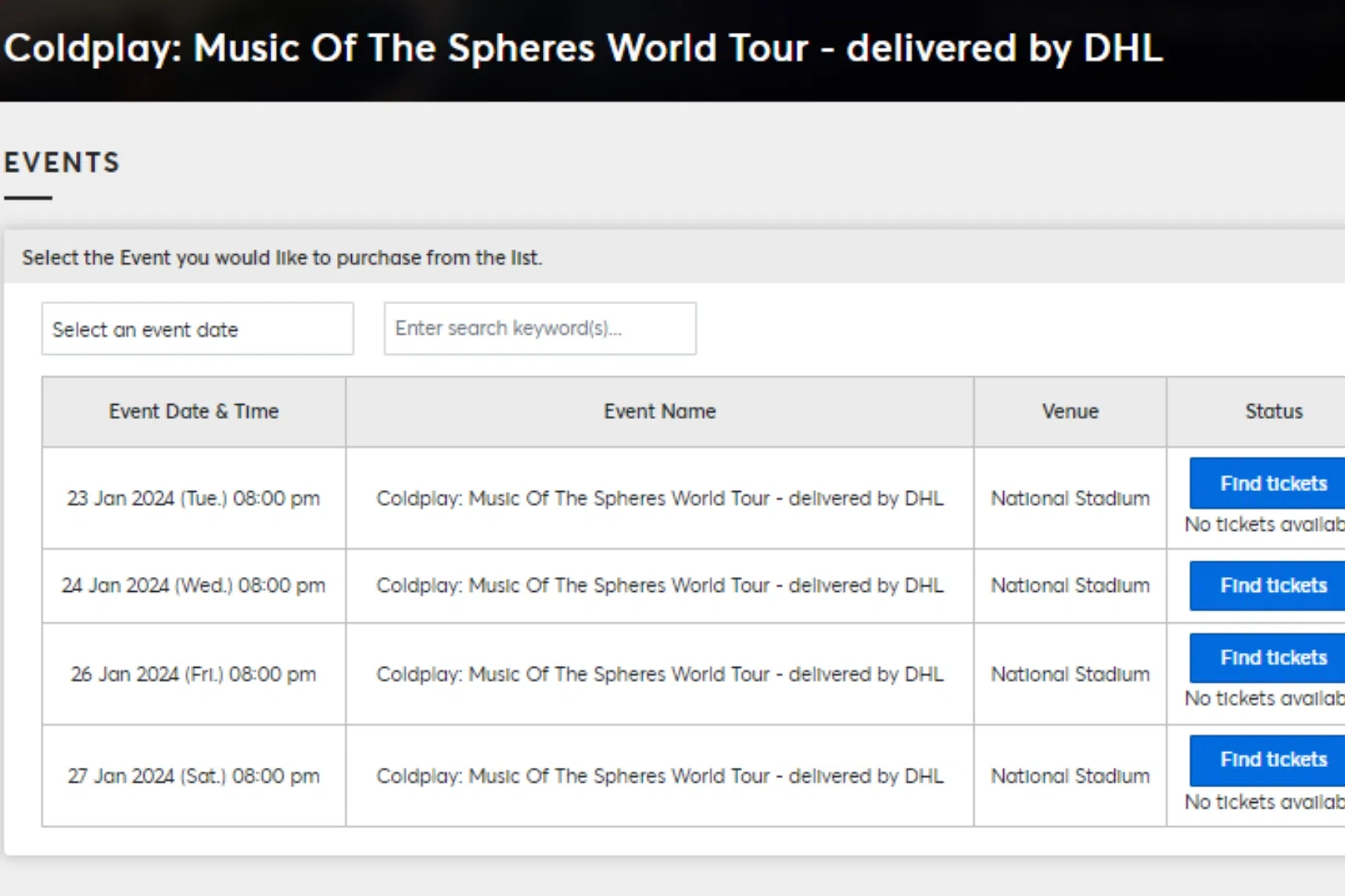 Coldplay announced last week that it would perform at the National Stadium on Jan 23, 24, 26 and 27.