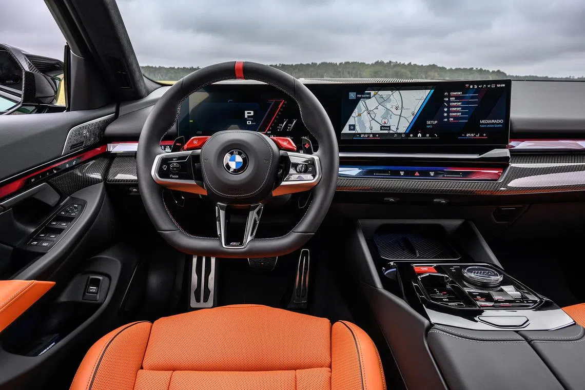 Some of that handling sorcery is down to active rear-wheel steering, a first for an M5. It allows the car to pivot with more immediacy into tight turns, while providing extra stability and composure through faster sections.