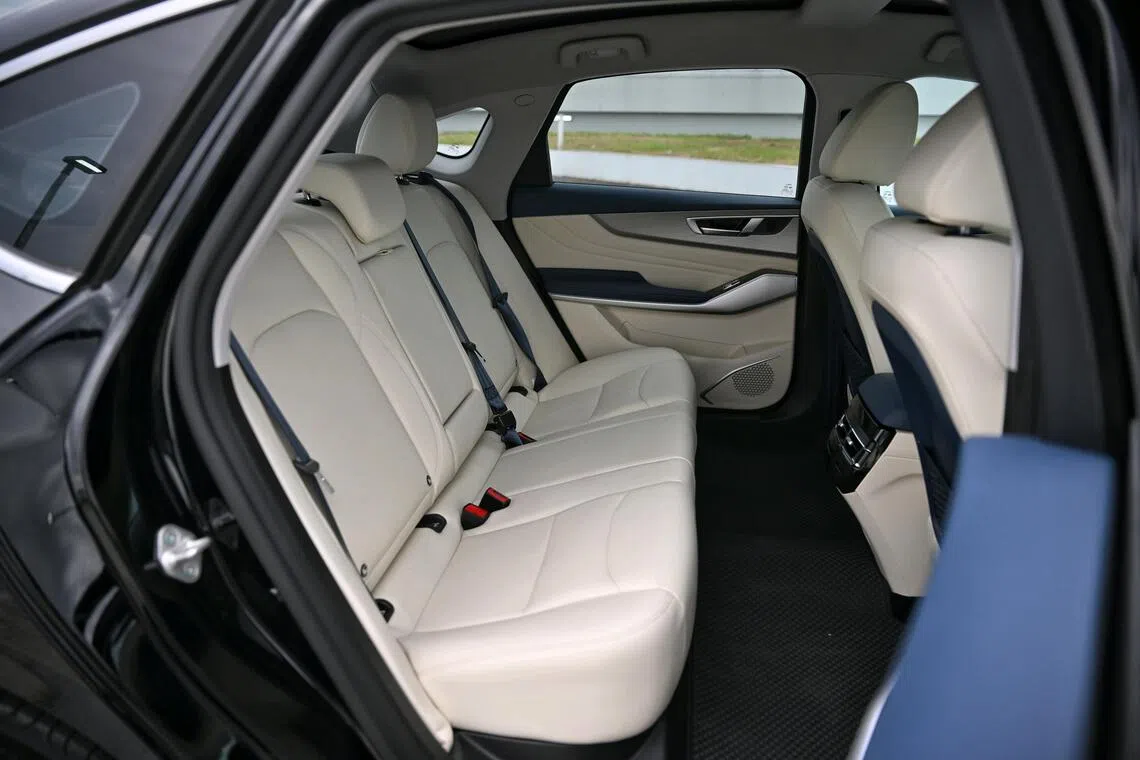 JMEV is restrained when it comes to frills on this entry-level variant. There is no seat ventilation, no seat position memory and its cruise control is not adaptive. But a storage unit below the centre armrest has an adjustable vent to receive chilled air from the car’s climate control.