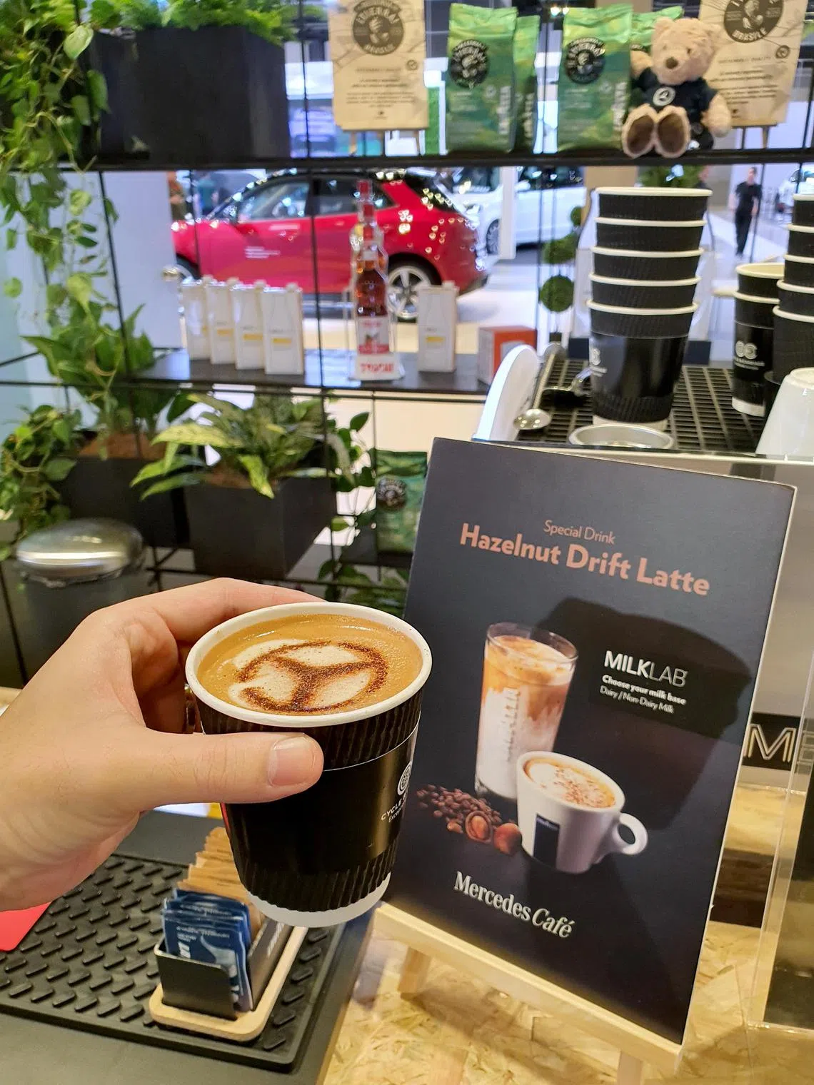 Road testing the coffee at the Mercedes Cafe at the Singapore Motorshow on Jan 11.