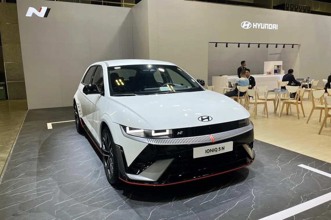 Almost obscured by the partition wall behind the main display area, where Hyundai has the Category A COE Ioniq 6 and the updated Avante Hybrid, is the Ioniq 5 N.