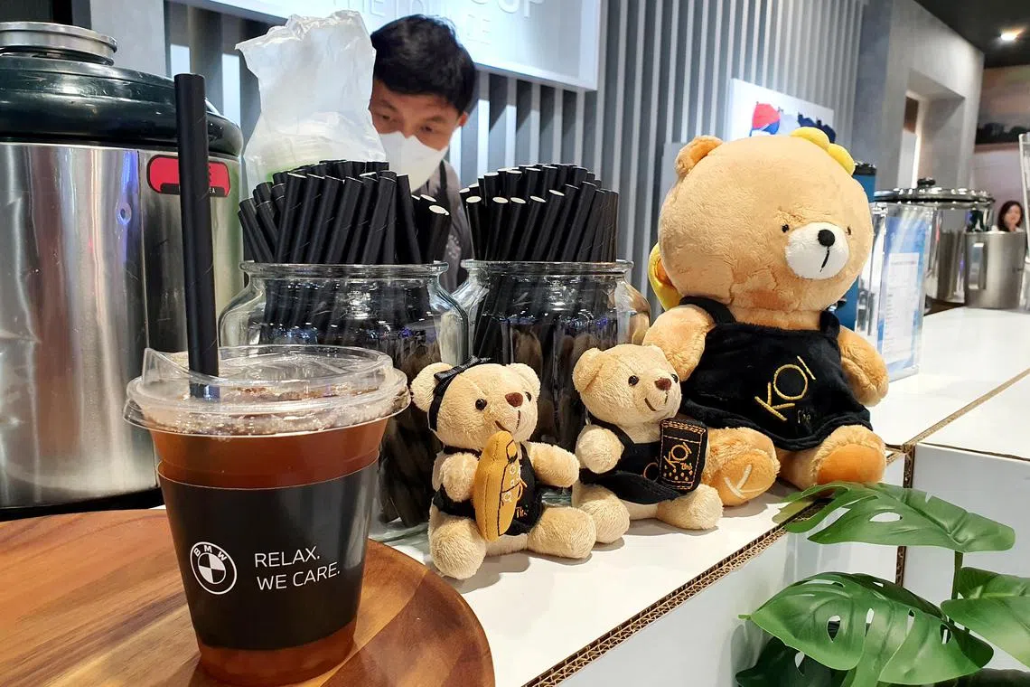 BMW has bubble tea at its booth at the Singapore Motorshow on Jan 11.