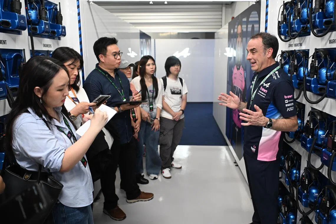 Head of technical and integrated partnerships at BWT Alpine F1 team, Ian Goddard, giving a rundown of the team’s garage at the Marina Bay Street Circuit on Oct 2.