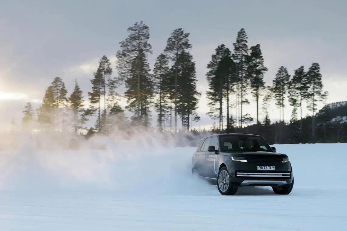 Hot car in the cold: Range Rover Electric prototype testing in arctic conditions.