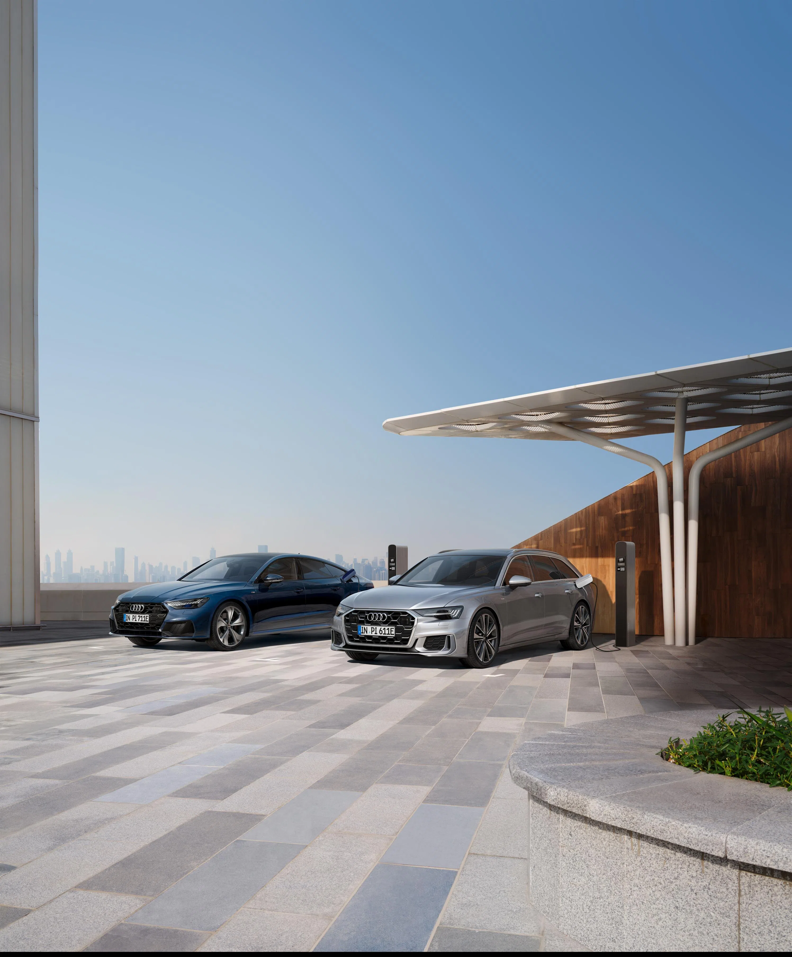 Audi A7 Sportback TFSIe (blue) and Audi A6 Avant TFSIe (silver): Different strokes for different folks.