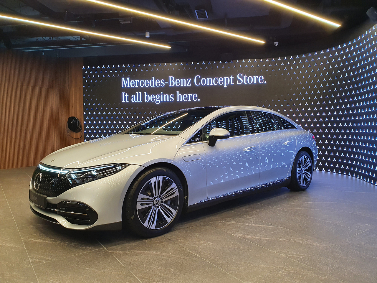 The Mercedes-Benz EQS can be viewed at the brand's first concept store here at Great World mall.