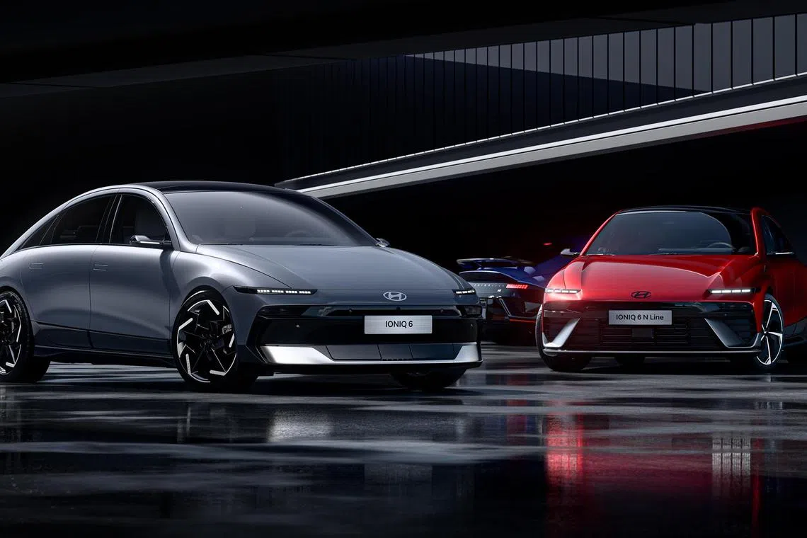Sharpened looks: The updated Hyundai Ioniq 6 (grey) also comes in the sportier-looking N-Line form (red).