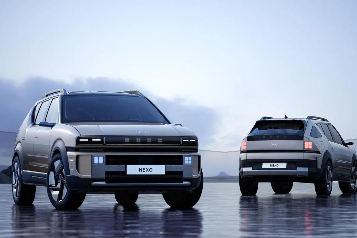 The second-generation Nexo is a mid-sized sport utility vehicle, roughly the size of the Tesla Model Y. Filling up the 6.69kg hydrogen tank takes five minutes, giving a range of up to 700km.