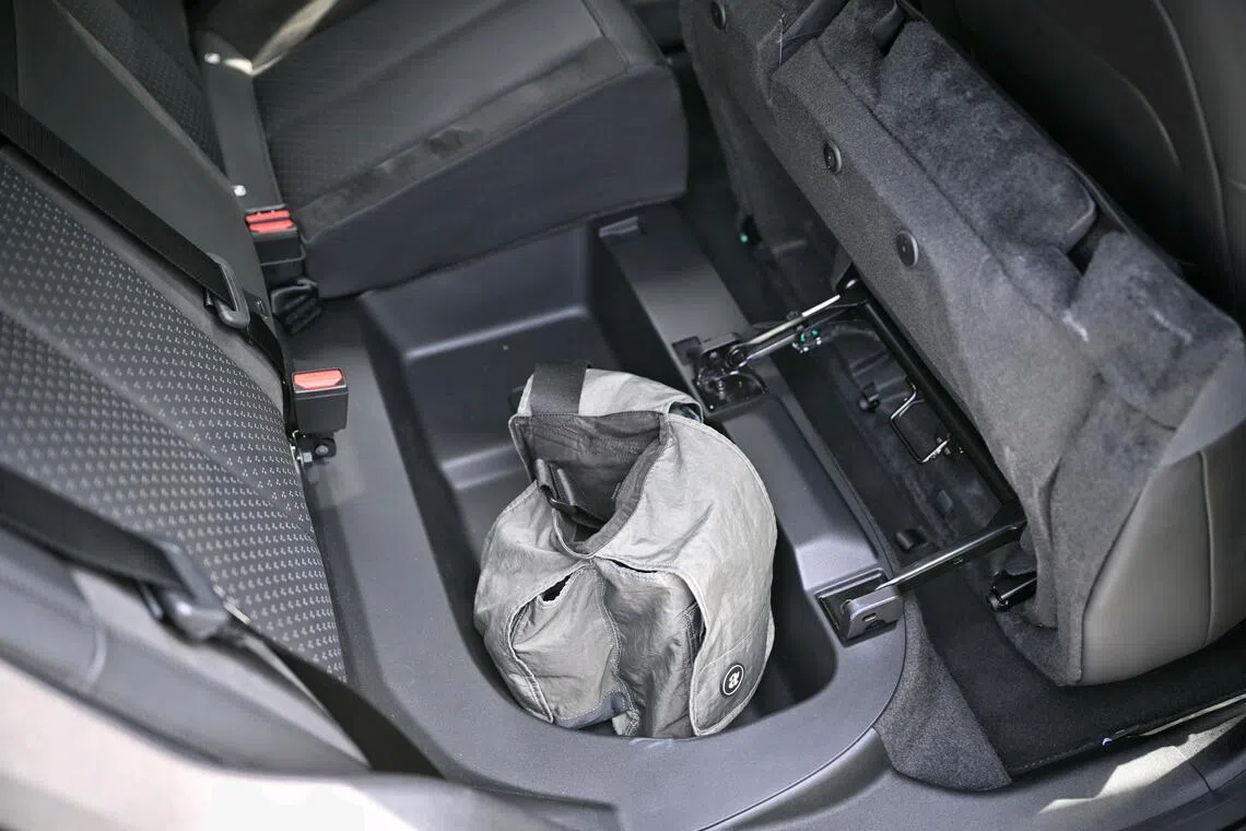 Thoughtfully, the cubby is washable, with a drain plug to let the water out. Below the rear bench is a 29-litre bin that is ideal for hiding valuables, such as a laptop, from prying eyes.