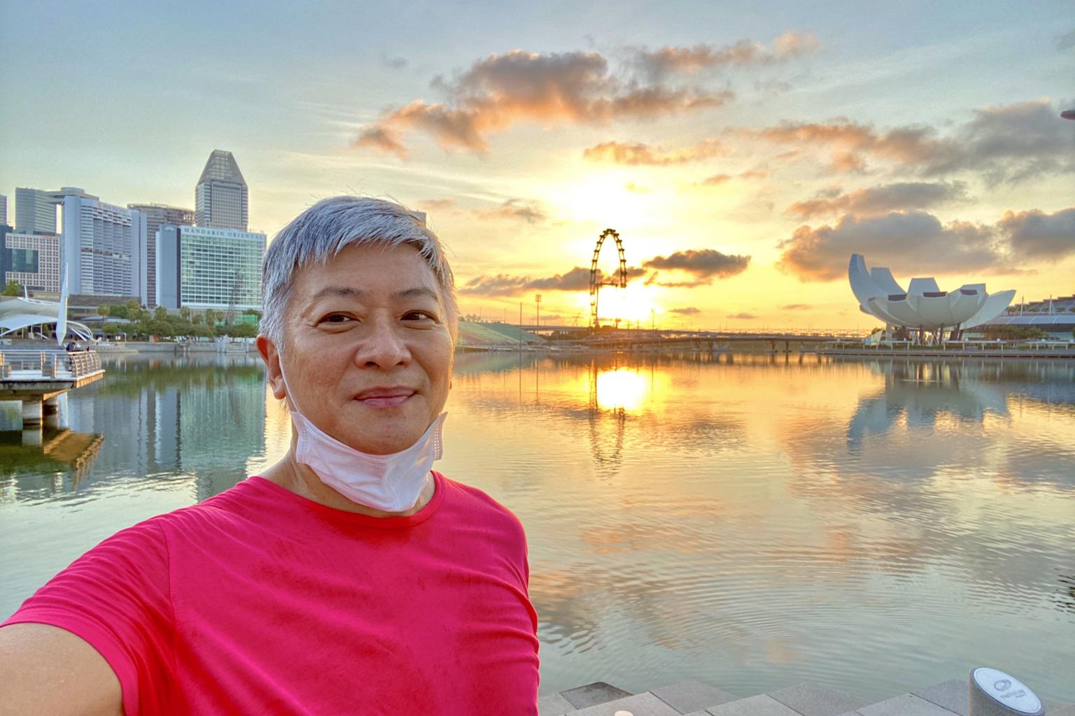 Singer-songwriter Dick Lee, out on a sunrise walk around the Marina Bay area during the circuit breaker.
