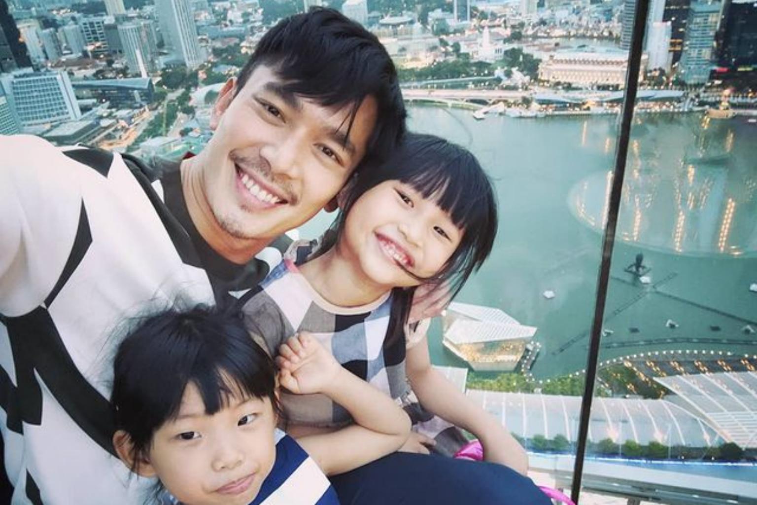 Actor Elvin Ng with his nieces at Marina Bay Sands.