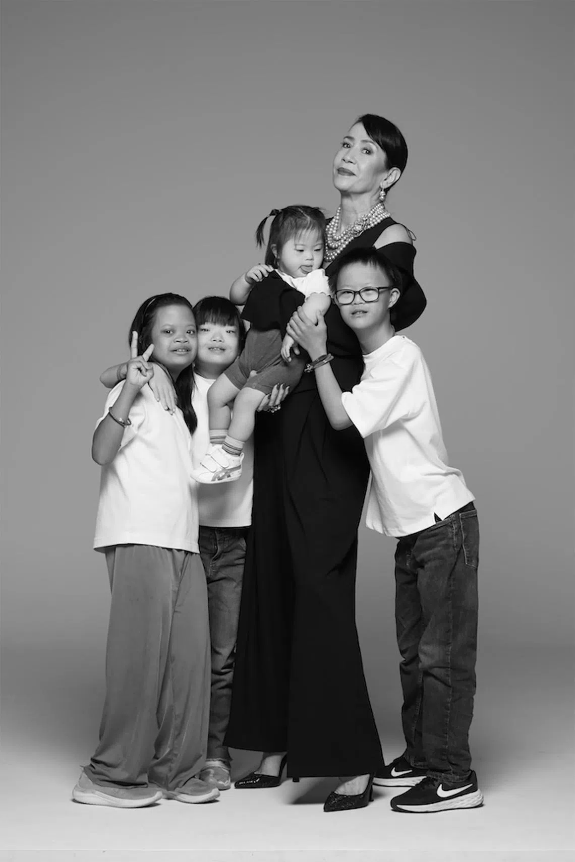 Former supermodel Pat Kraal in a photo campaign for the Down Syndrome Association, where she poses with some of the charity’s beneficiaries.