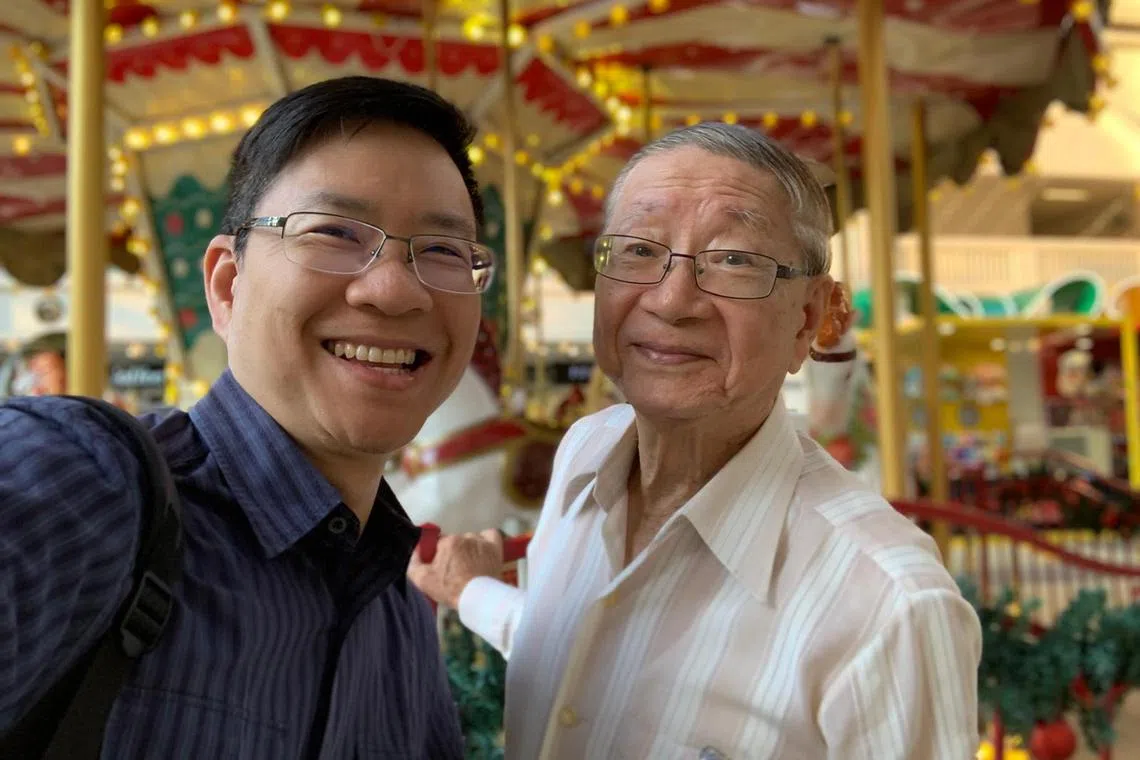 Mr Chen Jer Yaw, 55, and his father, former university lecturer Chen Ti Wen, 87, pictured here in George Town during a trip to Penang, Malaysia, in December 2019.