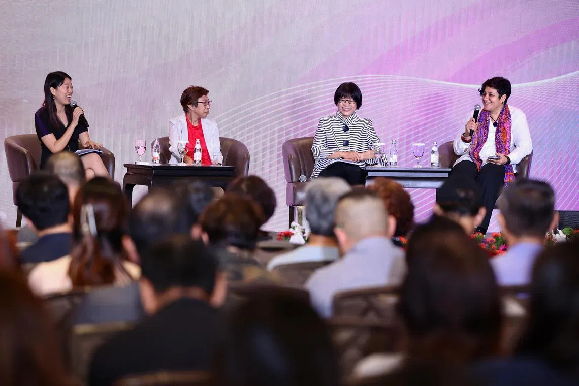 The panel moderated by (from right) ST correspondent Akshita Nanda, comprised C3A chief executive Soh Swee Ping, En Community Services Society’s executive director Carol Chan and head of gerontology programmes at SUSS Associate Professor Carol Ma.