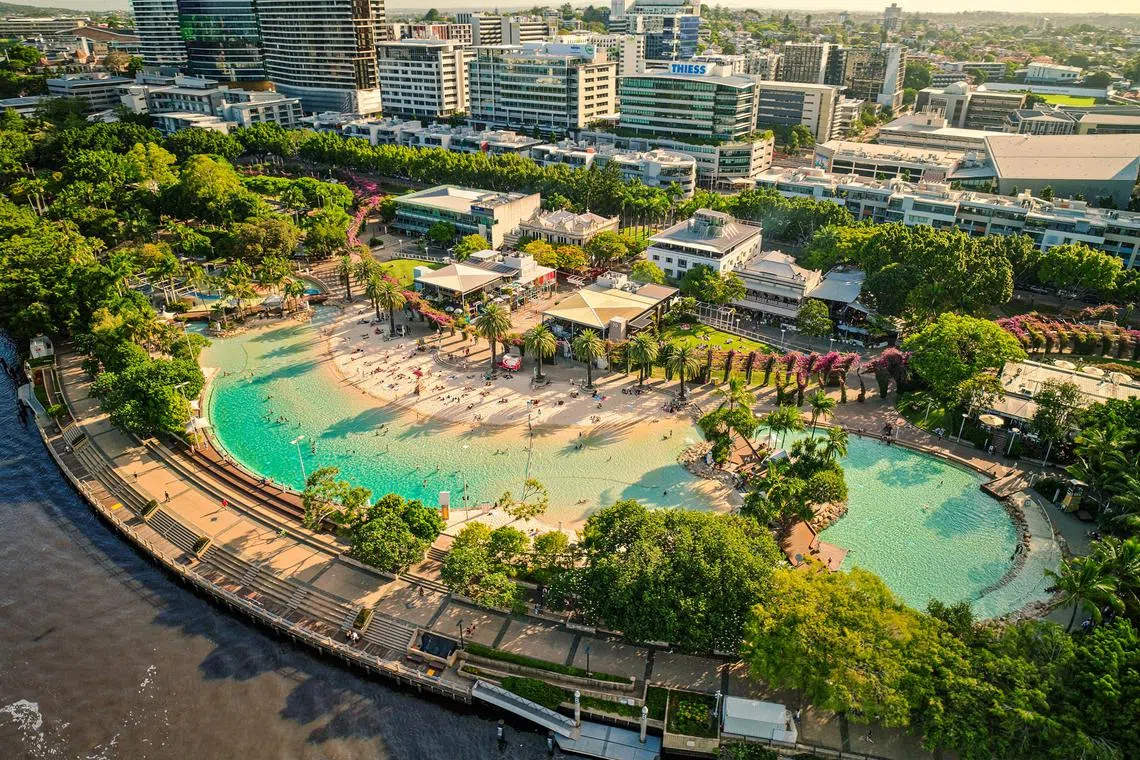 South Brisbane’s Streets Beach is Australia’s only inner-city man-made beach.