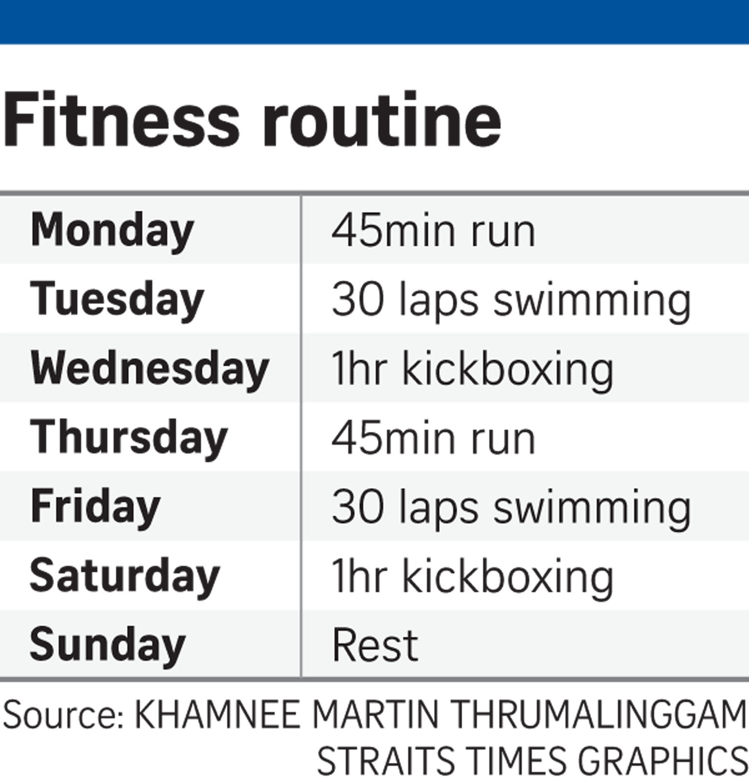 Besides doing kickboxing, Ms Khamnee Martin Thrumalinggam also swims and runs to stay healthy.