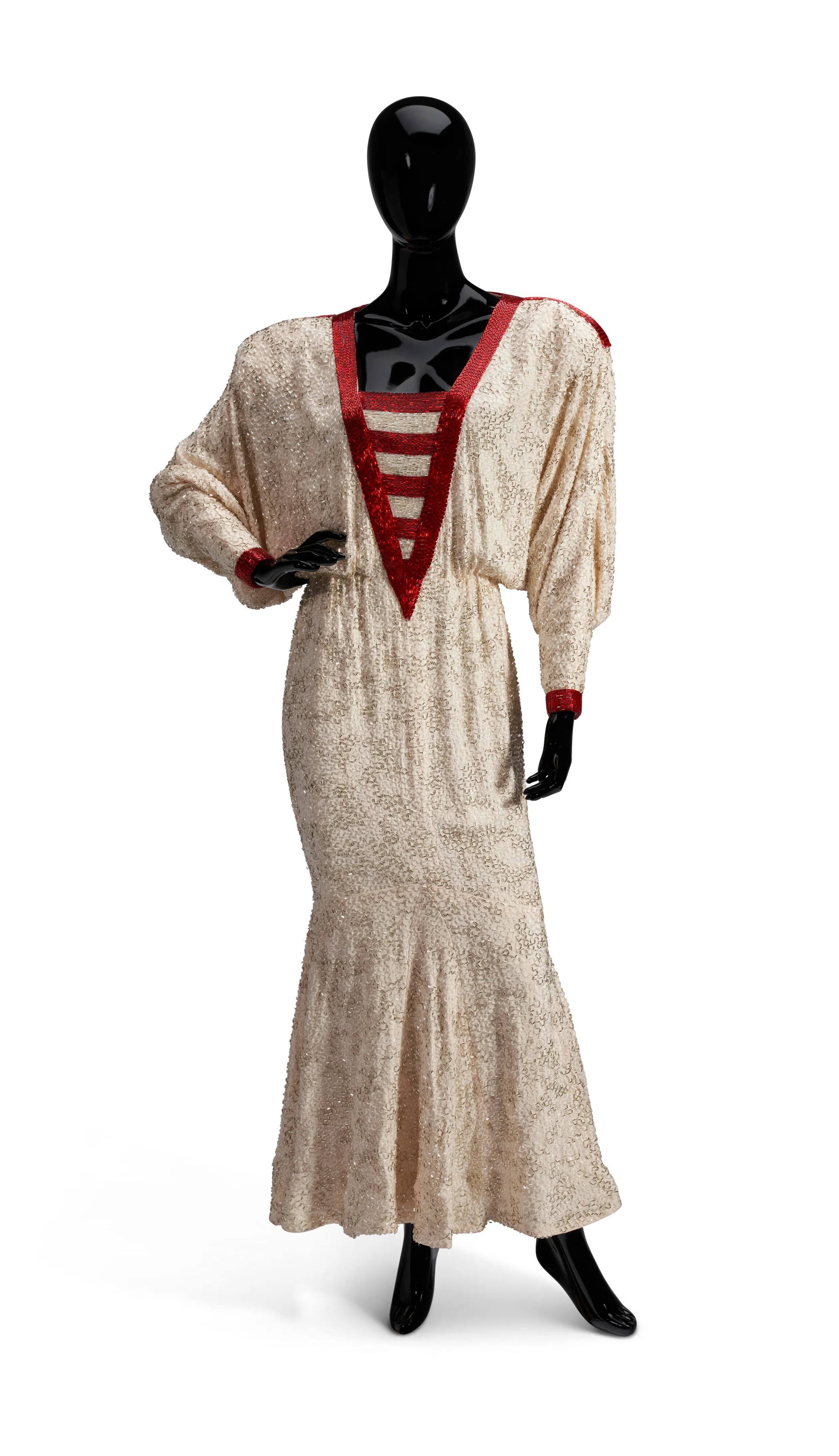 Donna Summer’s red and white silk evening dress worn during the 50th Presidential Inauguration Ball for Mr Ronald Reagan in 1985.