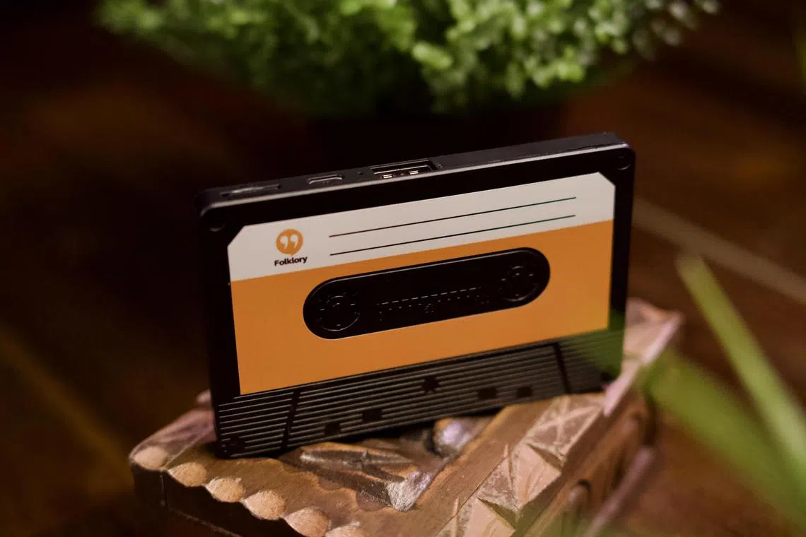 Folklory podcasts can come with a cassette-shaped souvenir that has a built-in speaker.