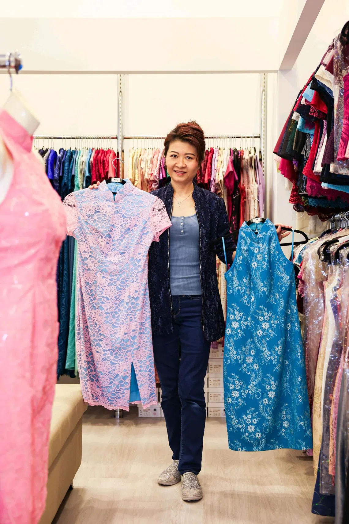 But by then, she had saved up enough to reboot her dream. Zion Creation opened in Orchard Plaza in 1998 in a space so small, she could barely fit in a table, sewing machine and a fitting room. She sourced most of her furniture from Ikea.