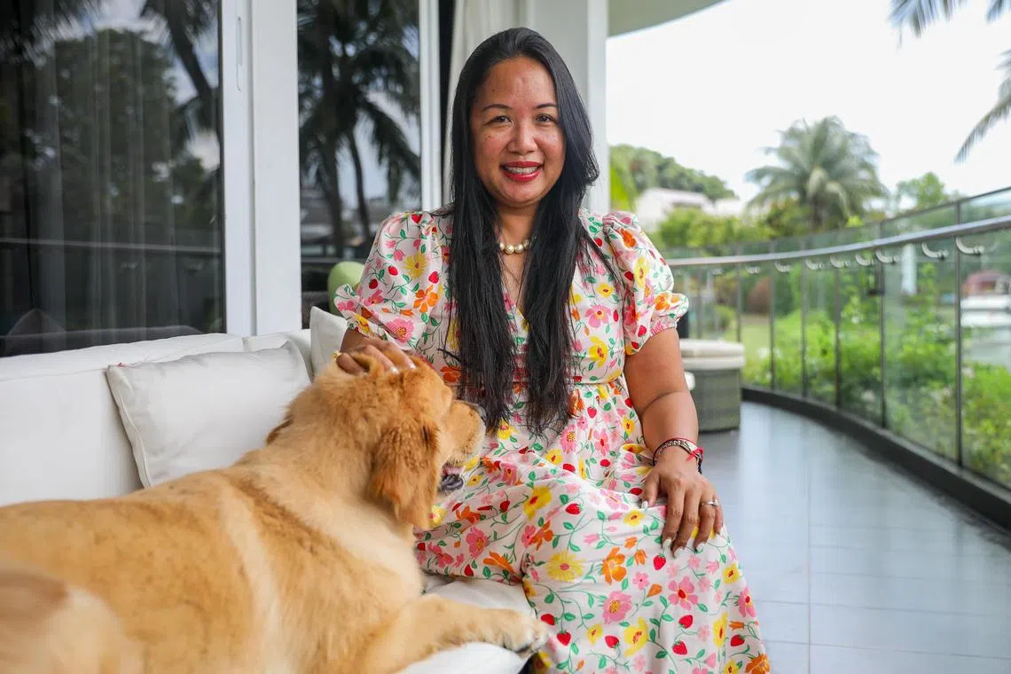 Ms Michele Cabasug resides in her apartment at Cove Drive in Sentosa, along with two of her three children and her two dogs.