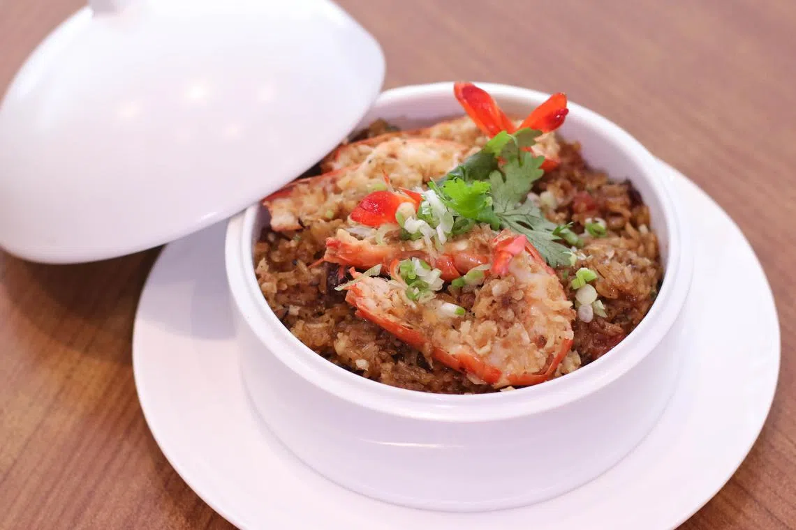 This single-portion dish uses up your leftover sausages and glutinous rice. It is contributed by Hua Ting master chef Lap Fai, who has added prawns for an extra dose of sweetness.