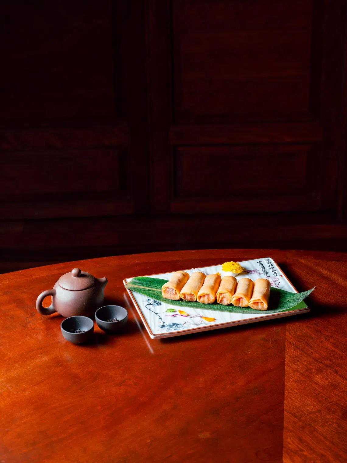 Crispy spring rolls with nian gao by Tien Court dim sum chef Liew Kok Ming.