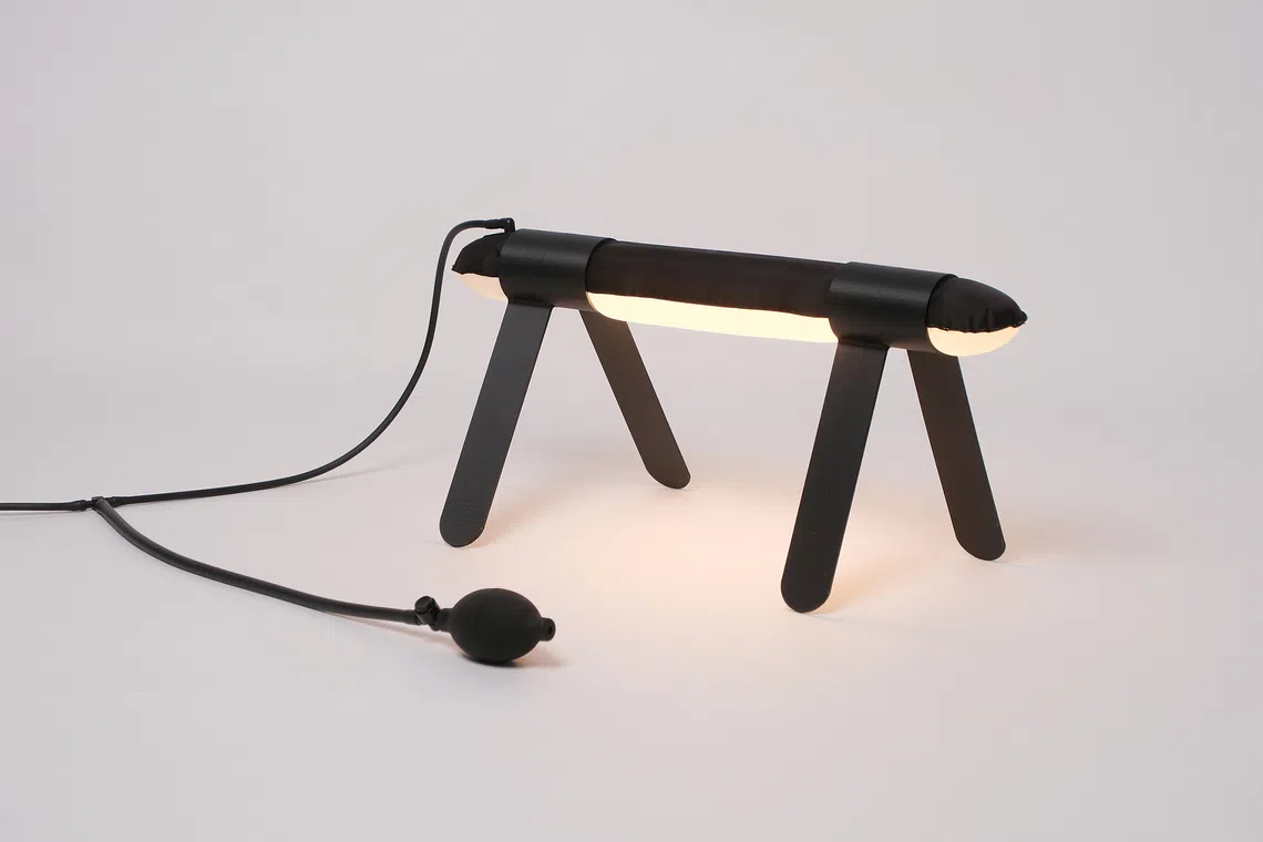 Singapore designer Eian Siew’s Air(just) explores how air might shape and reconfigure light by replacing traditional joints with inflated bladders.